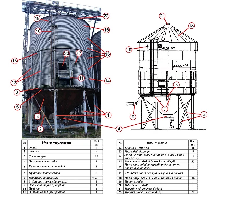 Зерносховище Petkus K-850 об`ємом 187 м3, оснащений драбиною, платформами та люками обслуговування, конусним дахом під кутом 30°. Корпус та дах бункера виготовлений з алюмінію, конусне дно - пофарбований метал з кутом 45°. Зерносховище забезпечує надійний захист завантаженої культури від атмосферних опадів, птахів та гризунів, можуть експлуатуватися в будь-яких кліматичних умовах без додаткових накриттів.